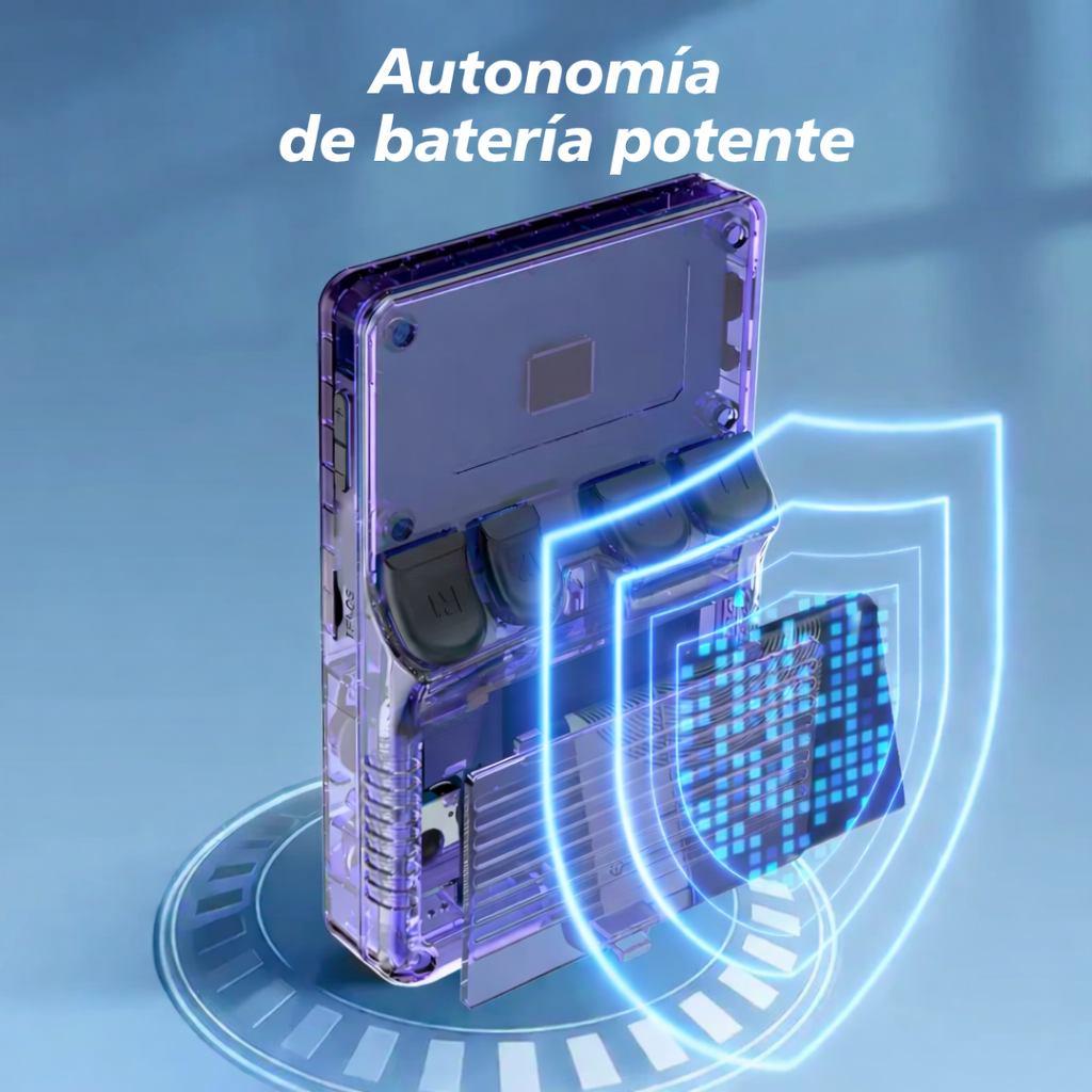 La pantalla IPS de 3.5 pulgadas ofrece colores vivos, excelente brillo y una resolución de 640 x 480, perfecta para disfrutar los clásicos con gran nitidez.